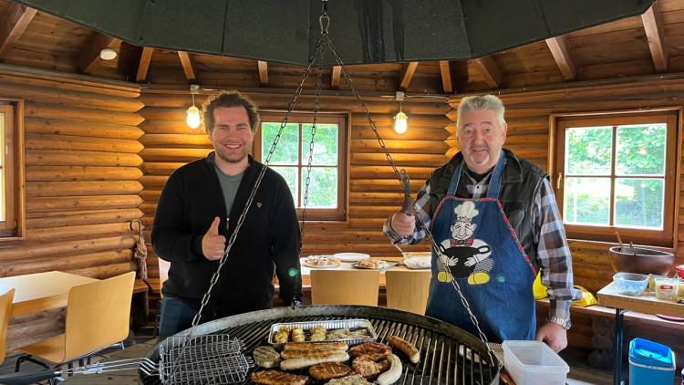 Parteivorsitzender Hannes Zühlsdorff und Fraktionsvorsitzender Karl-Heinz Koch werfen gut gelaunt den Grill für unser Sommerfest an. Das Wetter ist nicht sommerlich, dafür die Laune um so besser. Auch die Liberadlertour konnte trotz ein paar Regentropfen stattfinden:-)